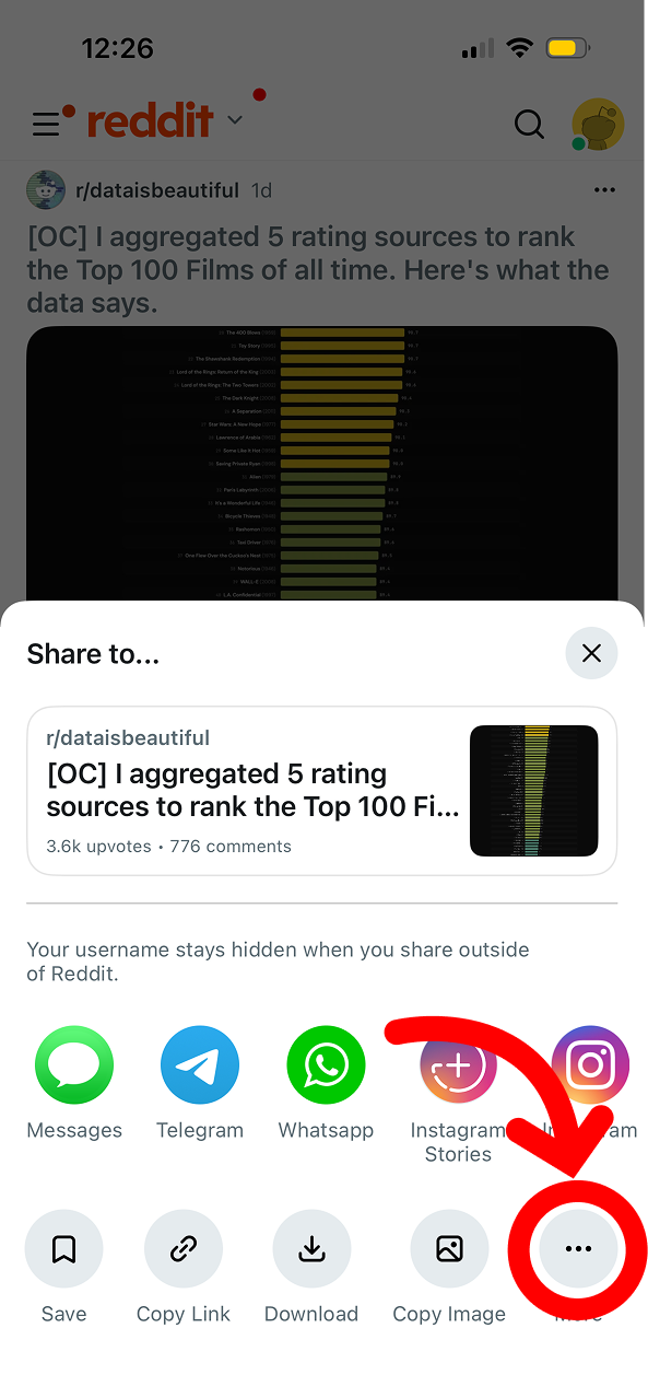 Open Reddit and find the post you want to save to Albo.