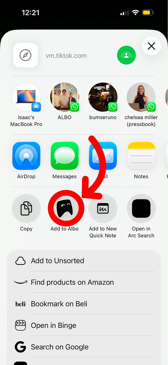Scroll the share sheet and tap Albo. The video will be saved with its thumbnail and details.